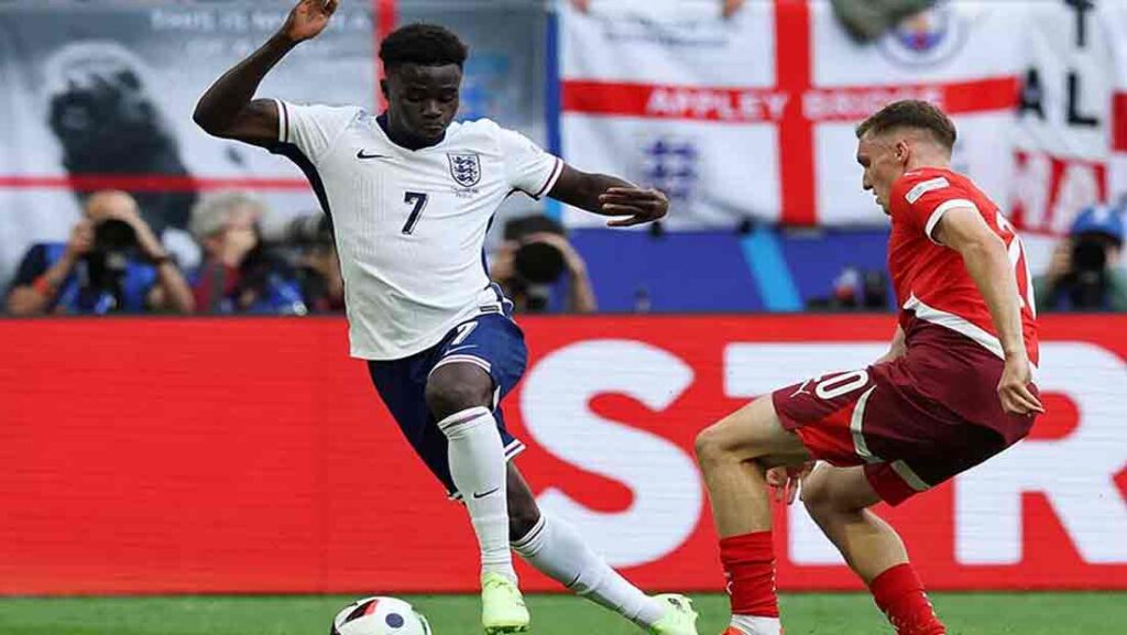 افتتحت سويسرا التسجيل في الدقيقة 75 بواسطة بريل إمبولو، مما وضع المنتخب الإنجليزي تحت ضغط كبير. ولكن لم يتأخر رد الإنجليز، حيث سجل بوكايو ساكا هدف التعادل في الدقيقة 80، معيدًا الأمل لفريقه وجماهيره.