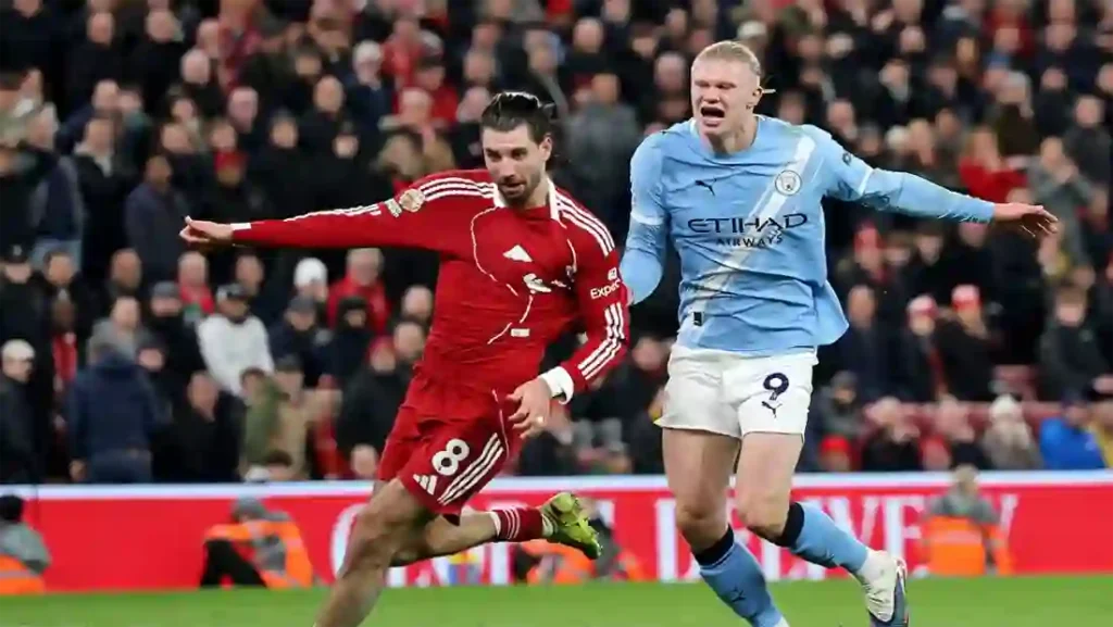 الدوري الإنجليزي الممتاز – في واحدة من أكثر المباريات إثارة هذا الموسم، نجح مانشستر سيتي في خطف فوز ثمين من قلب ملعب “أنفيلد” بنتيجة (2-1)، ليعزز مطاردته للمتصدر أرسنال ويترك ليفربول في حيرة من أمره بعد نهاية دراماتيكية لم تكن تخطر على بال.